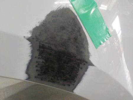 ただ正直損傷部しだいではレーダーに影響が出ない可能性もありますしこのあたりはケースバイケースかとは思いますので今回はユーザー様に修理をした場合の今後のデメリットをご説明しご承認いただきました上でバンパー修正で作業を進めさせて頂きます、