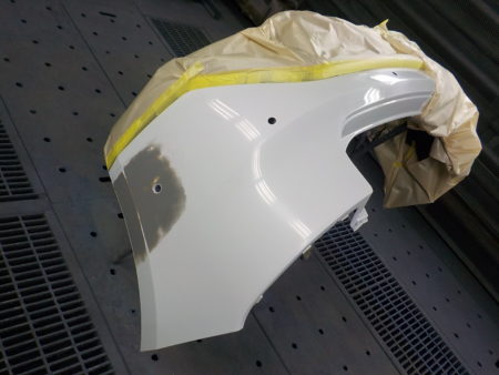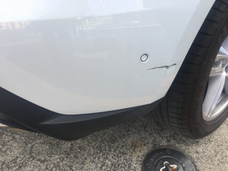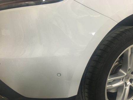 そんな中で細かい作業で申し訳ありませんが今回は最近国産外車問わずある意味社会的問題⁉となっておりますレーダーセンサー付き車両のバンパー修理作業内容になります。