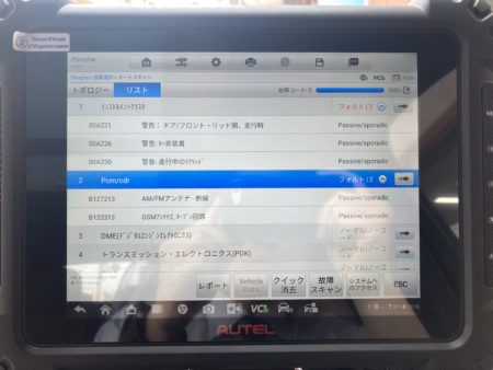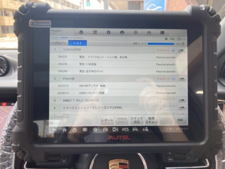 バンパーも脱着しておりますのでフォルト消去も含め診断機をかけてみましたが実作業とは関係ないエラーのオンパレード。外車アルアルですのでユーザー様にご意向を確認の上消去.