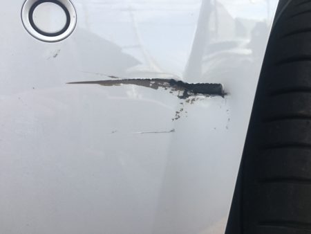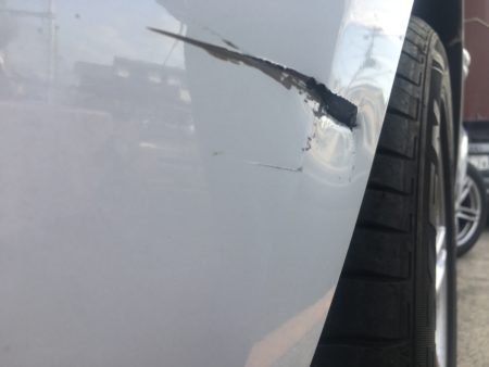結構鋭利な物と接触したのかサクッと切れてます、が形状は保ってますのでバンパー脱着